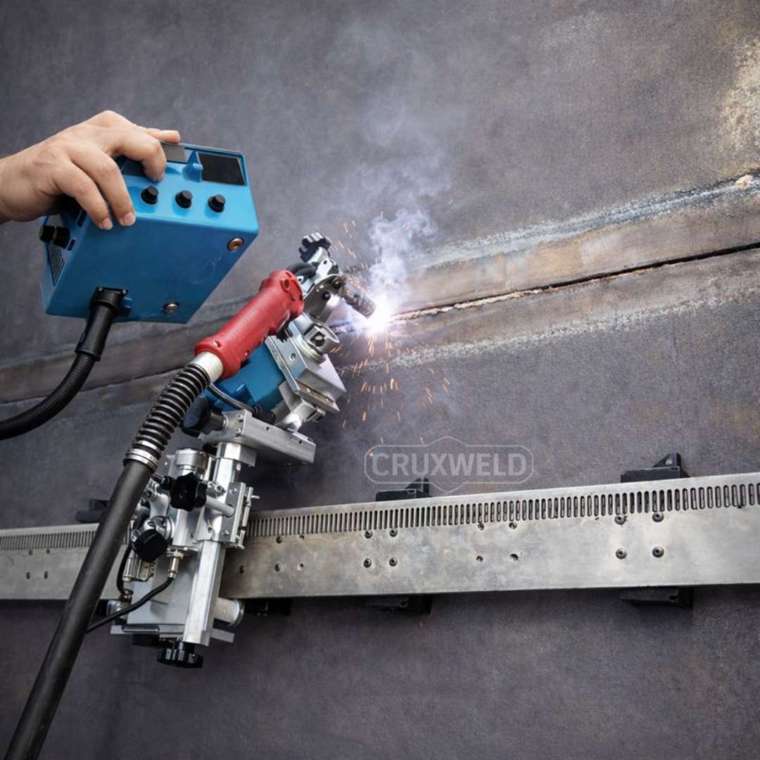 Yes. The system utilizes a heavy-duty rack-and-pinion drive and powerful permanent magnets to ensure slip-free travel. This makes it ideal for all-position welding, including vertical-up (3G) and overhead (4G) seams on large storage tanks.