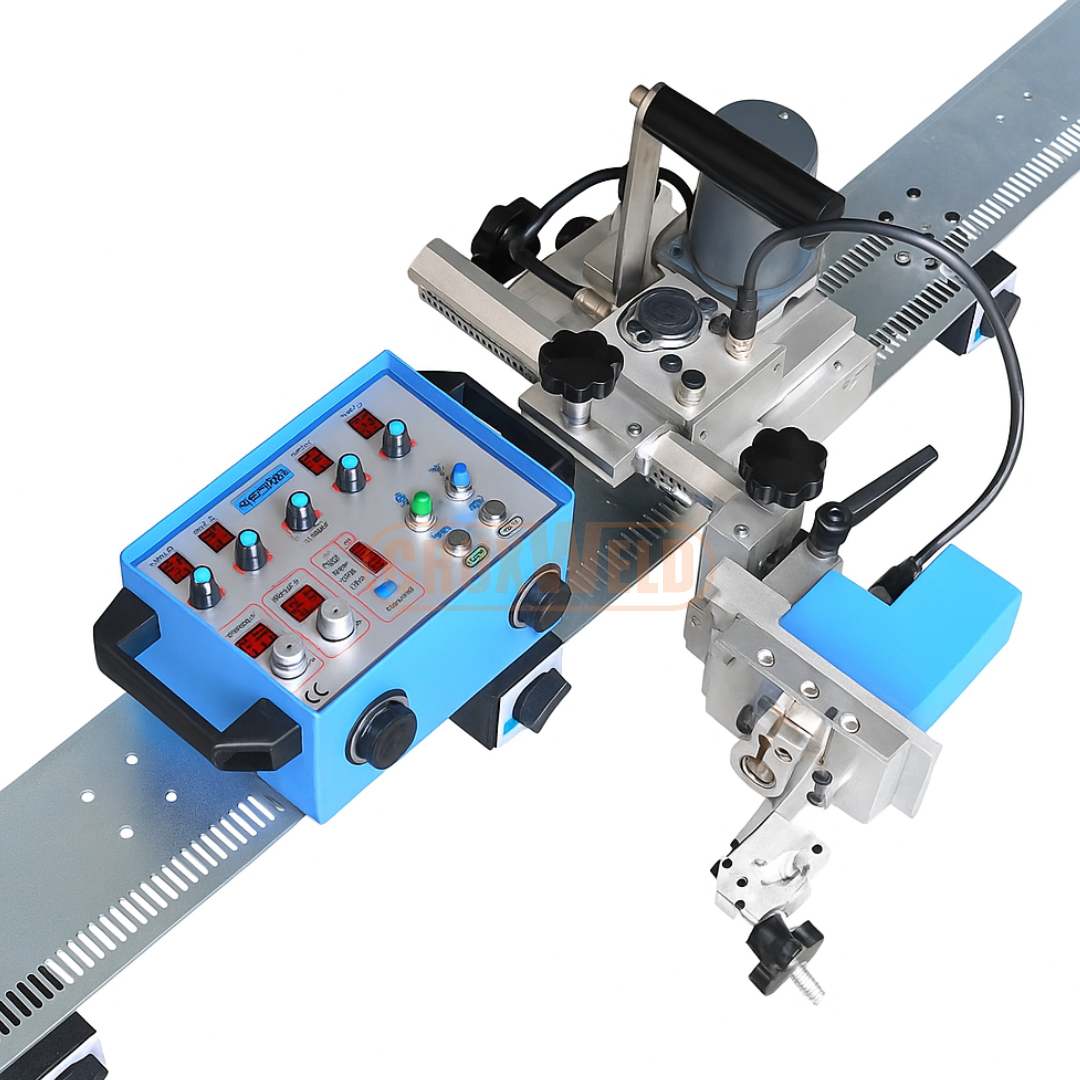 A flexible magnetic track adapts instantly to any tank diameter or curvature without the need for custom fixtures. It attaches strongly to ferrous surfaces, allowing for rapid setup and precise torch alignment on both vertical and overhead circumferential welds.