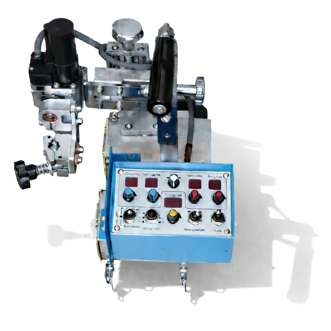Inductive auto-stop helps the carriage stop at the end of the weld path, reducing overrun and making long-run welding more manageable for the operator.