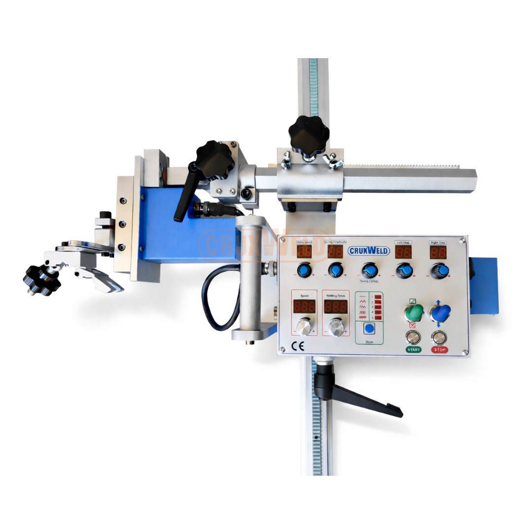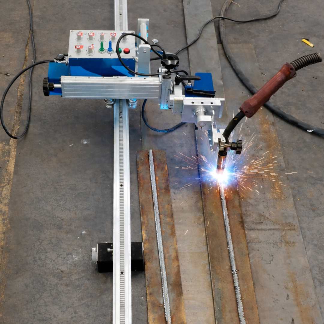It uses a rack and pinion drive system for steady and consistent motion in vertical and horizontal welding.
