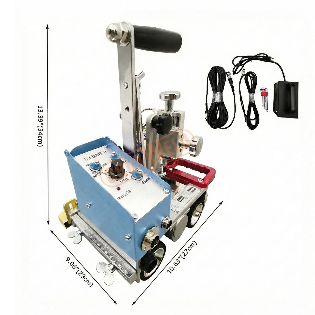 The Cruxweld portable trackless fillet Welding Carriage is an innovative, mobile welding tool that streamlines the welding procedure through automation. This reliable machine guarantees stable and consistent performance thanks to its sophisticated speed control system, ensuring you achieve durable, high-quality welds every time. It is perfect for applications such as rail welding This system is ideal for any project requiring long, even welds, such as those performed with a portable welding machine.